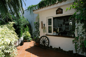 In einer der typischen kleinen gassein befindet sich hinter einem idyllischen Laubengang das eingangsgewolbe aus Naturstein dieses fuhrt mitten in einen reizenden, raffiniert angelegten garten um den sich das gesamte gebaute entwickelt